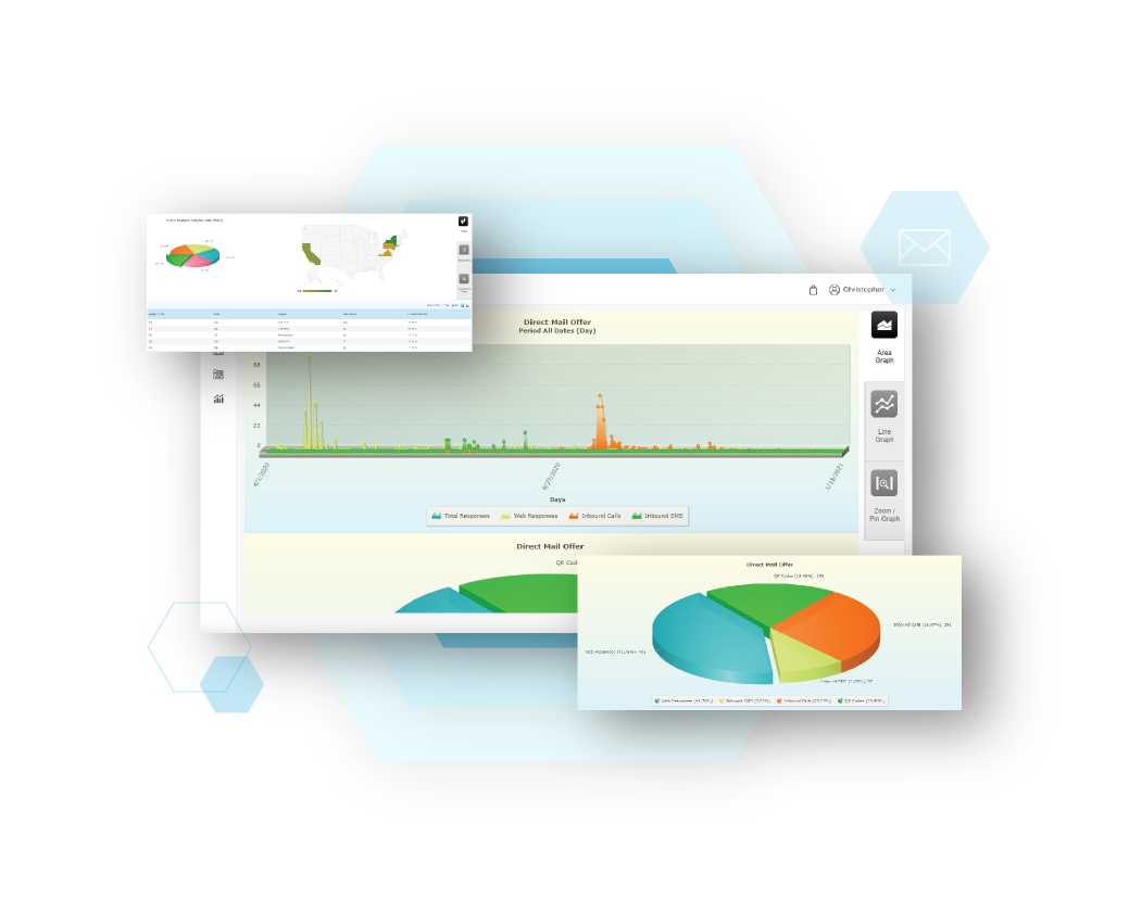 You’ll have the ability to add omnichannel options to your direct mail campaigns including email, call tracking, inbound sms, PURLs and dynamic landing pages, social media marketing, and more.
